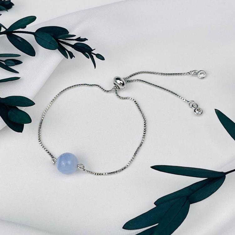 Браслет регулируемый с камнем Голубой агат, от 16 см, 10 мм, гладкий, Бразилия