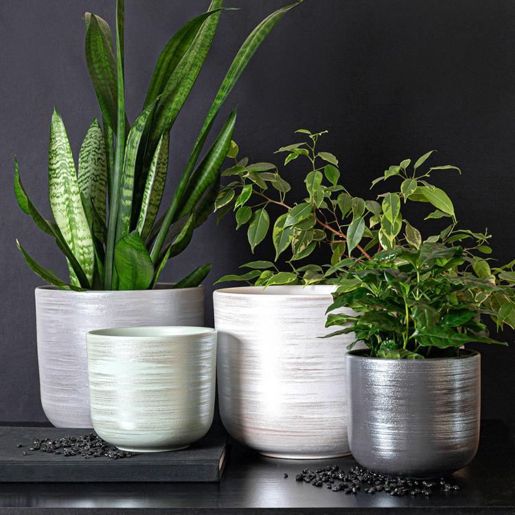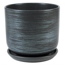 Горшок для цветов керамический "Галактика-2" 0,8л, д12см, h10,5см, форма "Цилиндр", с поддоном, графит (Россия)