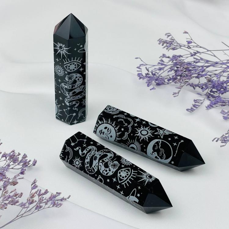 Кристалл из Обсидиана "Оккультные знания", 80-90 мм, Мексика