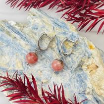 Серьги из Родохрозита, 9 мм, гладкий, английский замок, Аргентина