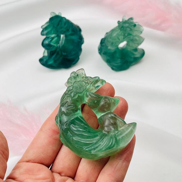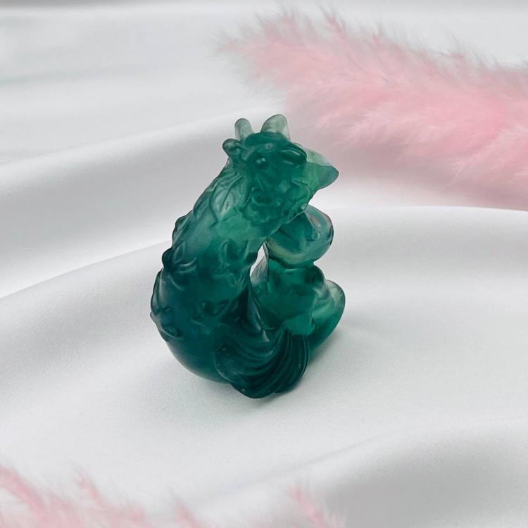 Фигурка резная Лиса "Кицунэ" из Флюорита, 45х60 мм, Китай