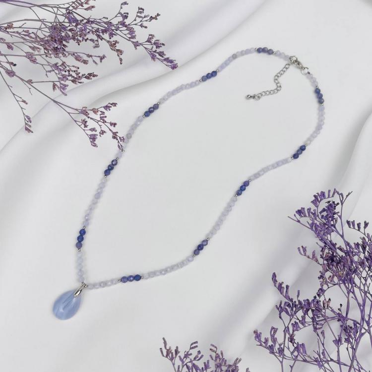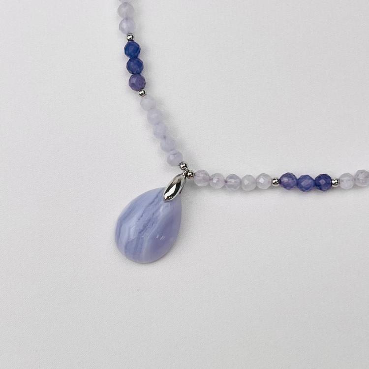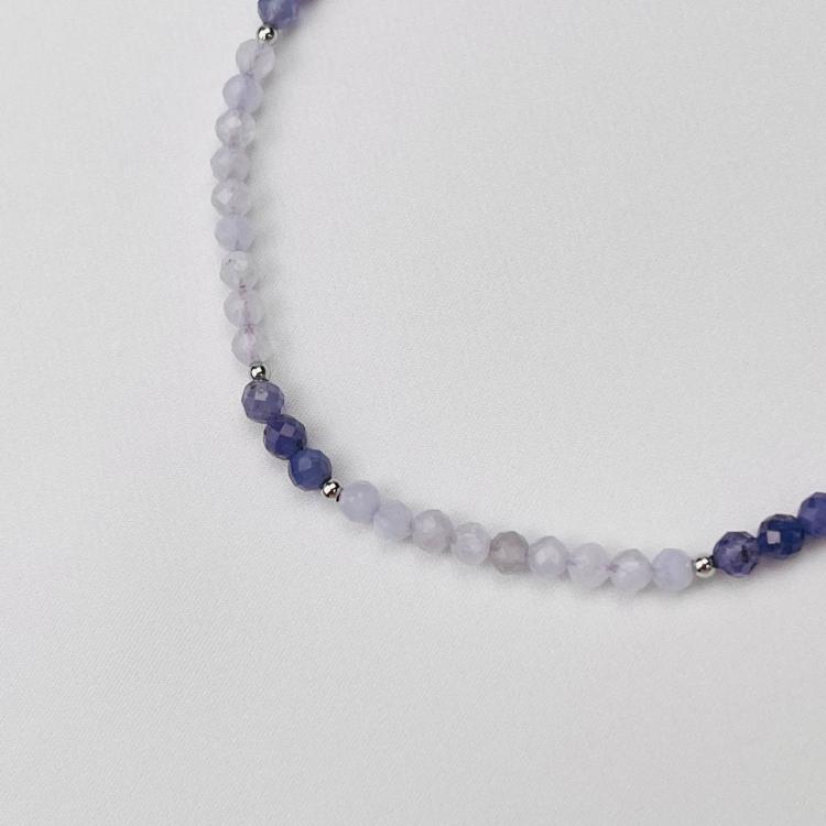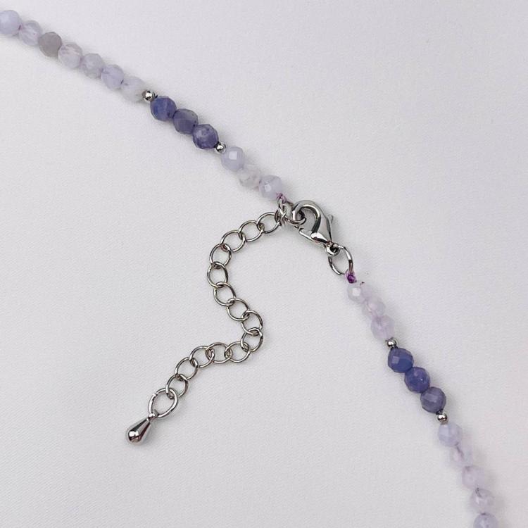 Колье из Голубого агата и Танзанита, 41 см + – 45 см +, 3,5 мм , граненый, Бразилия