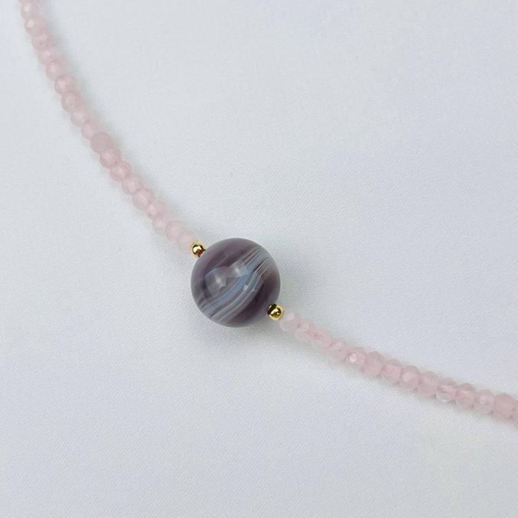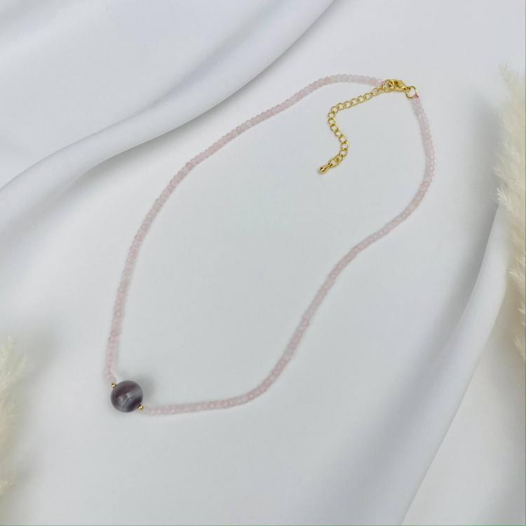 Чокер из Розового кварца и Бразильского Агата, 38 см + – 40 см +, 10 мм, гладкий/Граненый, Бразилия