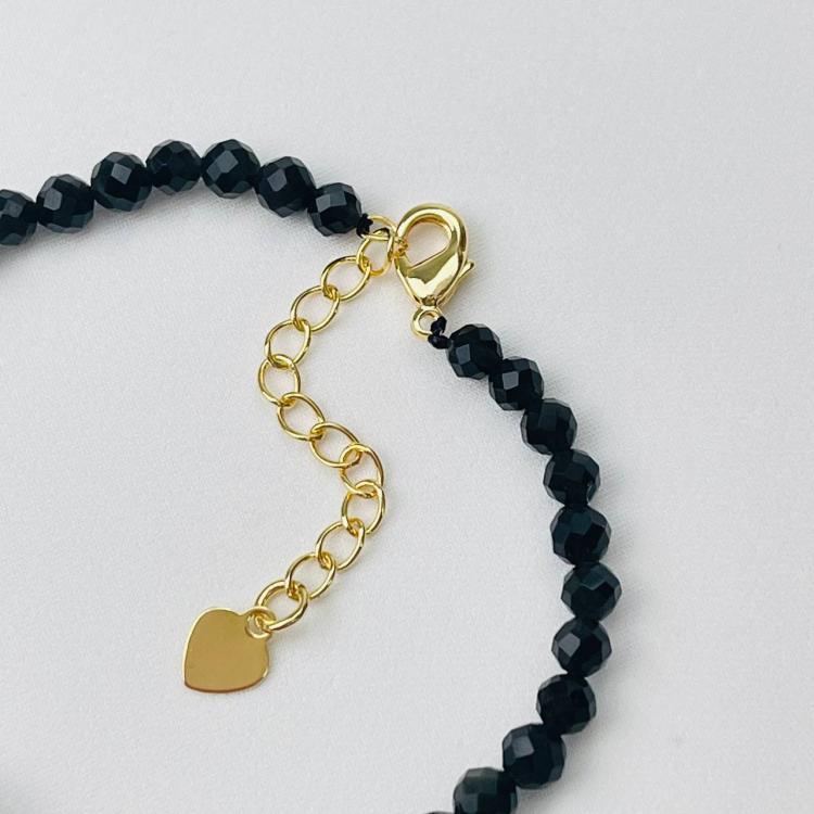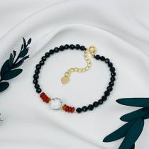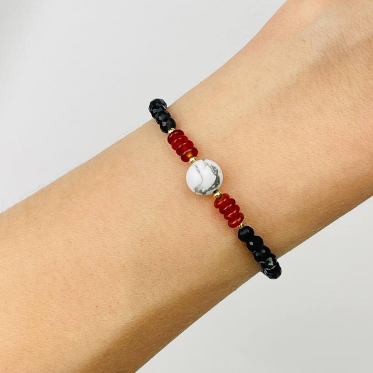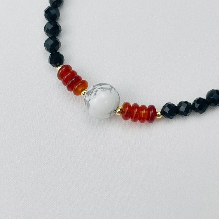 Браслет из Обсидиана,Сердолика и Говлита, 16,5 см + – 18 см +, гладкий/Граненый, Мексика