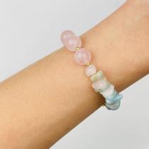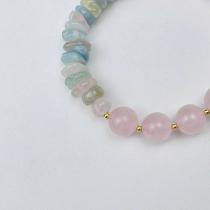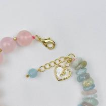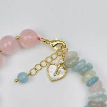 Браслет из Розового кварца и Берилла микс с подвеской "Сердце", 15,5 см + – 17 см +, 10 мм, Бразилия