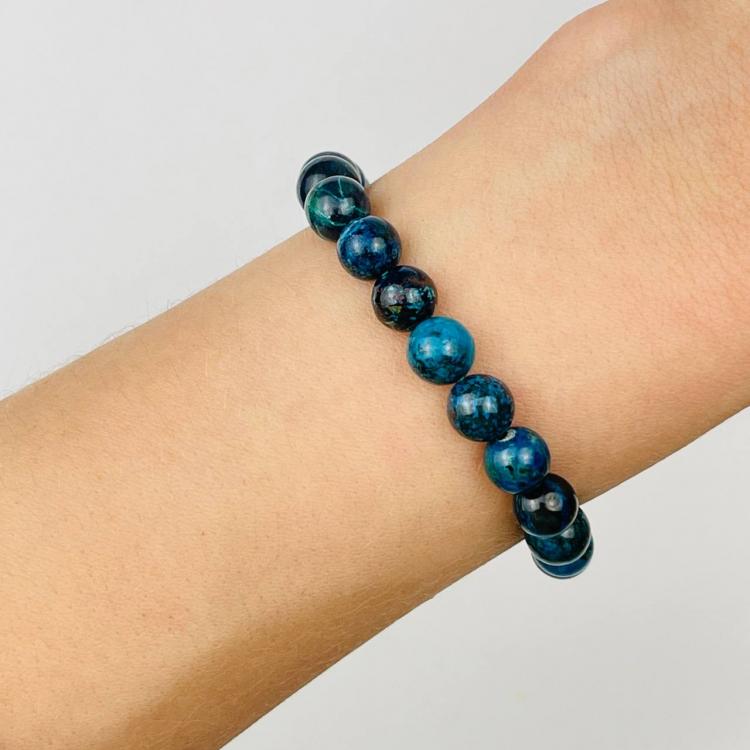 Браслет из Хризоколлы, 16,5 см – 18,5 см, 7,5-8 мм, гладкий, США
