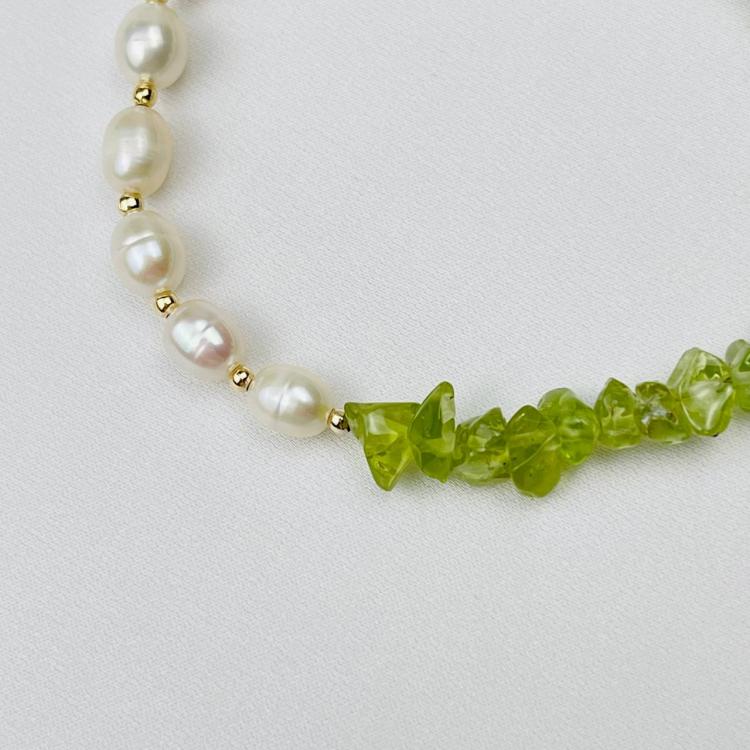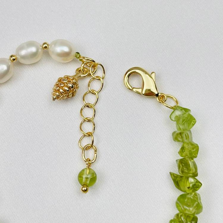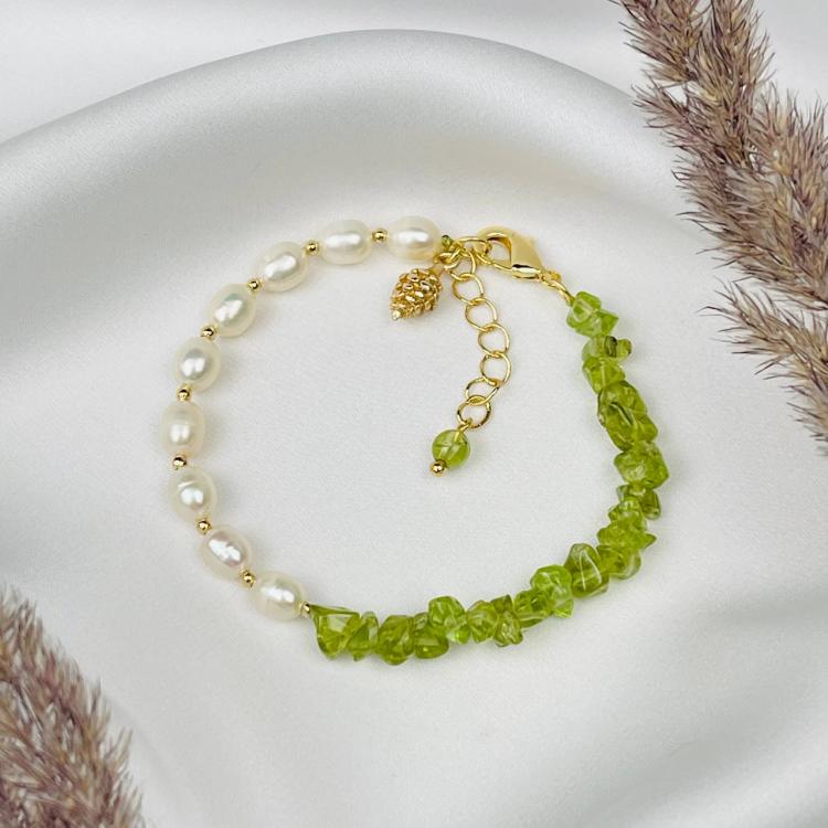 Браслет из Хризолита и Жемчуга, 16 см + – 17,5 см +, необработанный, США
