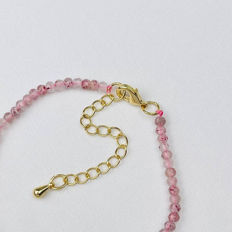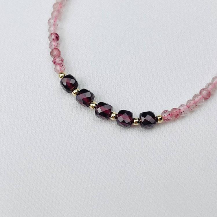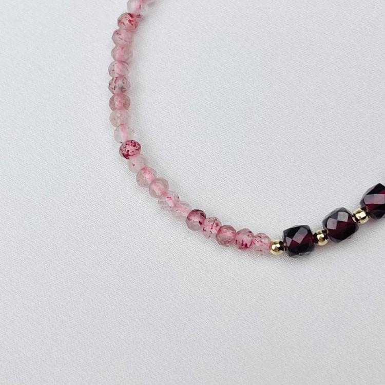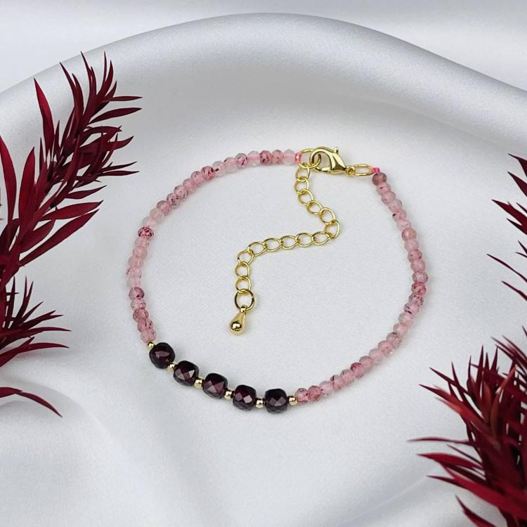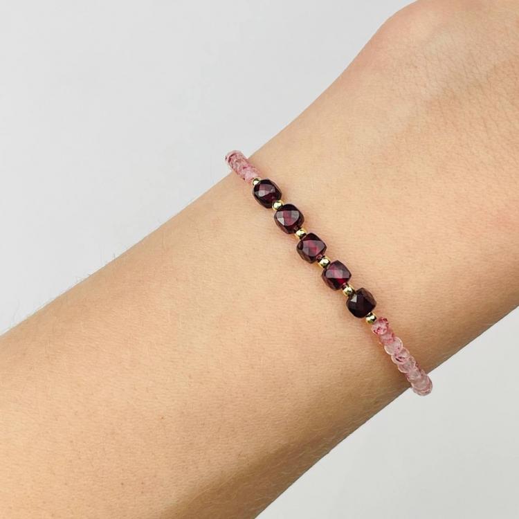 Браслет из Клубничного кварца и Граната, 16,5 см + – 18,5 см +, граненый, Бразилия