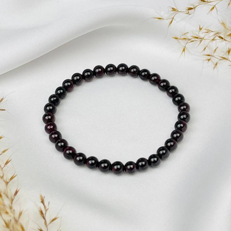 Браслет из Граната (Пироп), 15 см – 18 см, 5 мм, гладкий, Индия