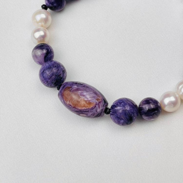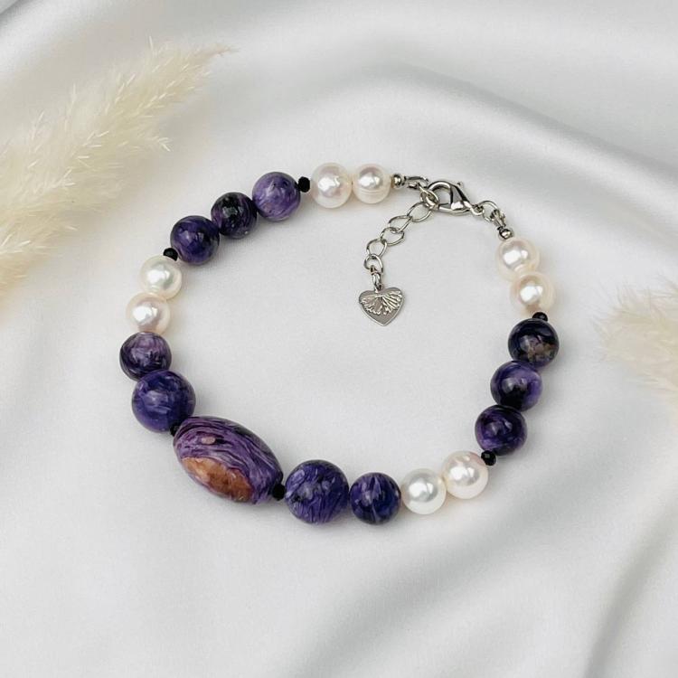 Браслет из Чароита и Жемчуга (Россия/Китай), 19 см + – , Россия
