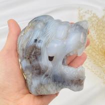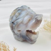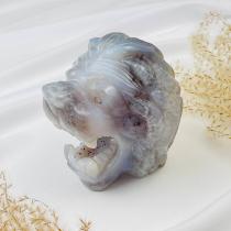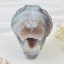 Лев резной из Агата с жеодой, 8х9 см, Бразилия