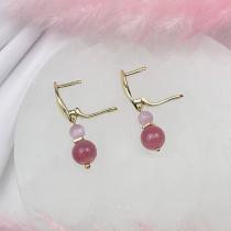 Серьги двойные из мадагаскарского Розового кварца и Кунцита, гладкий, английский замок, Мадагаскар