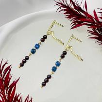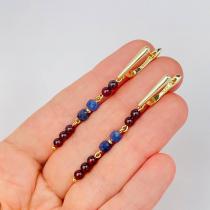 Серьги длинные из Граната (Пироп) и Содалита, 4 мм, гладкий/Граненый, английский замок, Индия