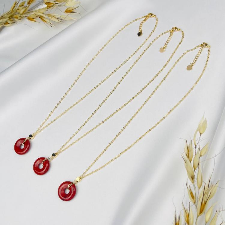 Кулон на цепочке с кирпичной Яшмой, золото 14К, Африка