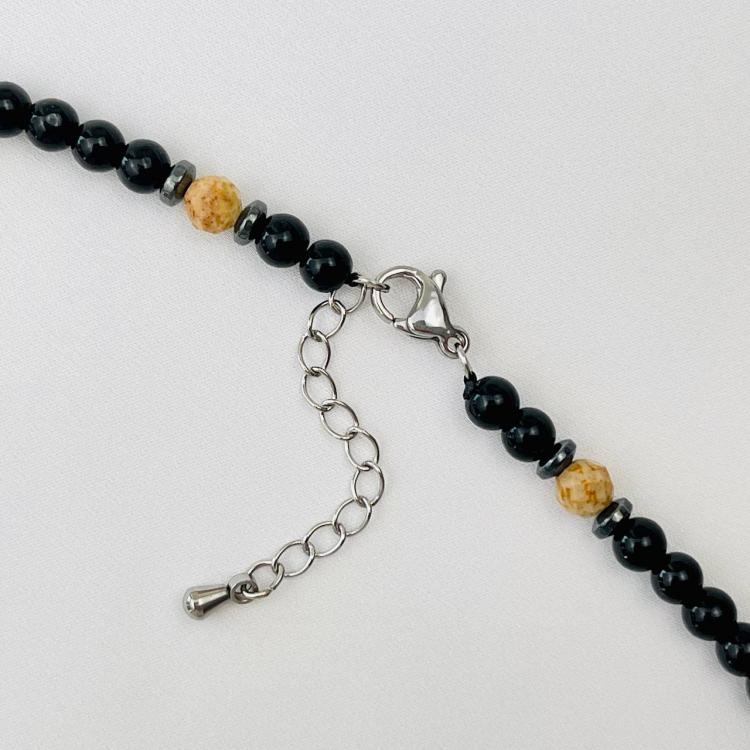 Бусы из черного Агата и песочной Яшмы с кулоном, 40 см + – 46 см +, 5 мм, гладкий/Граненый, Бразилия