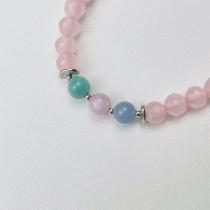 Браслет из Розового кварца, Ангелита,Кунцита и Амазонита, 14,5 см – 15,5 см, 6 мм, гладкий/Граненый, Бразилия