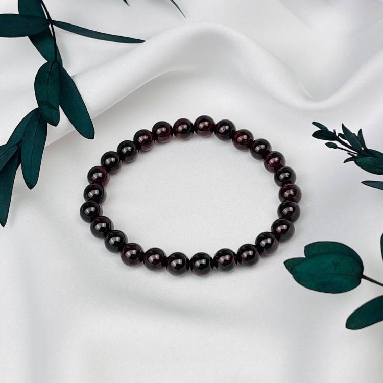 Браслет из Граната (Пироп), 16 см – 18 см, 6,5 мм, гладкий, Индия