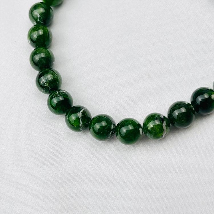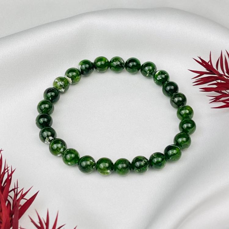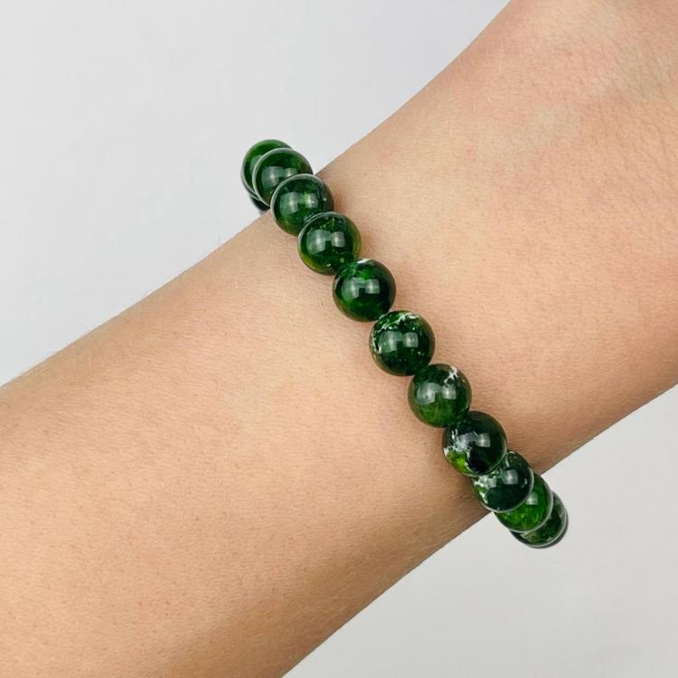 Браслет из камня Хромдиопсид (Россия), 17 см, 7 мм, гладкий, Россия