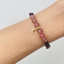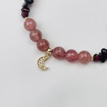 Браслет из Клубничного кварца и Граната с подвеской "Месяц", 17 см + – 18 см +, Бразилия