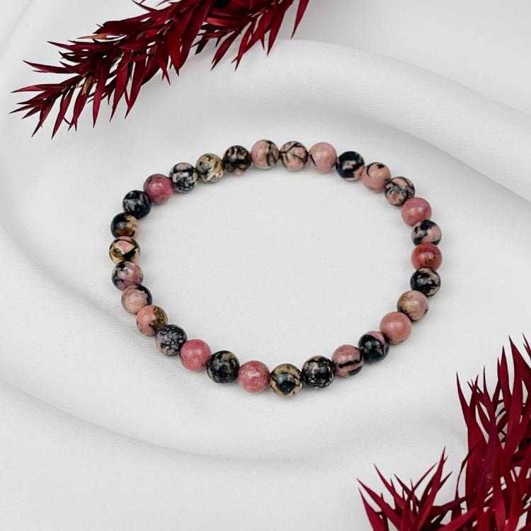 Браслет из Родонита, 17 см – 18 см, 6 мм, гладкий, США