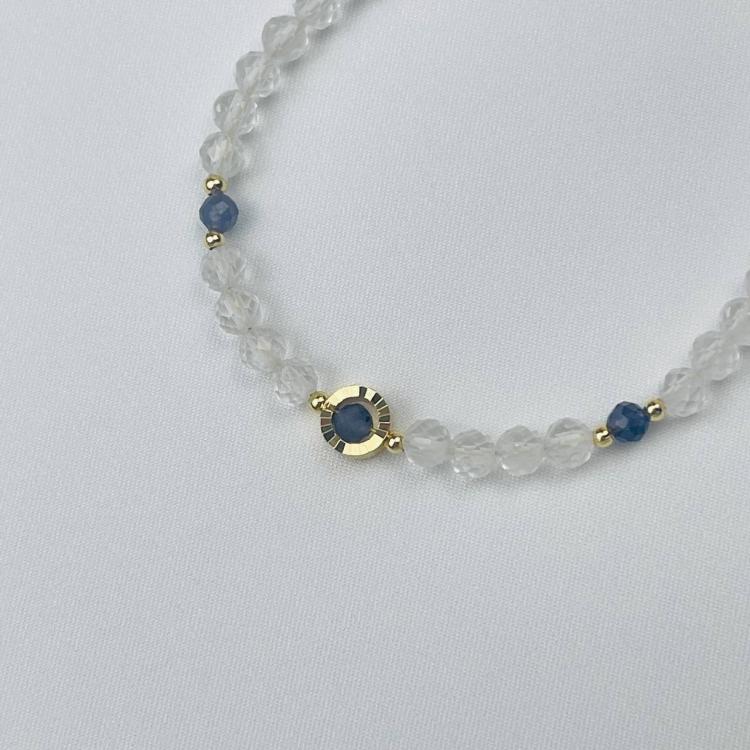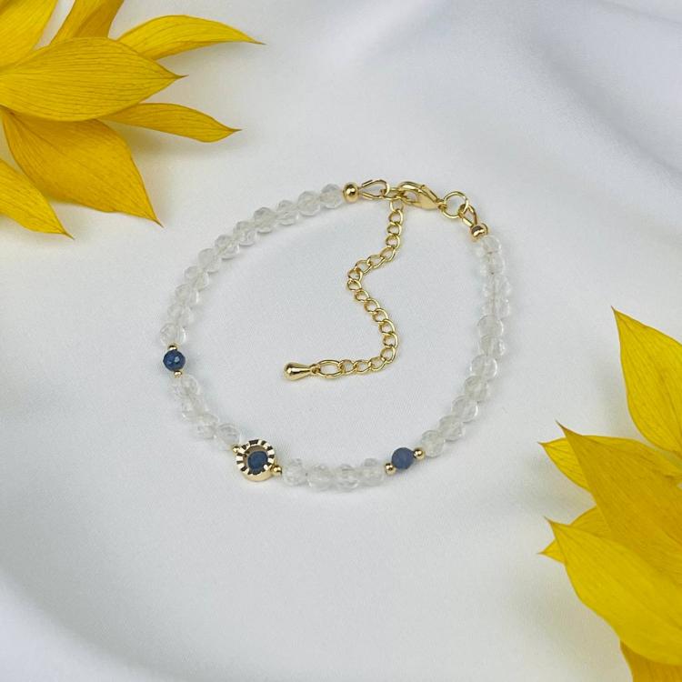 Браслет из Горного хрусталя и Иолита, 16,5 см + – 18 см +, 4 мм, граненый, Бразилия
