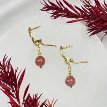 Серьги из Клубничного кварца, 8,5 мм, гладкий, английский замок, Бразилия