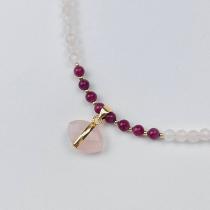 Чокер из Розового кварца и Турмалина с подвеской, 38 см +, 4 мм, гладкий/Граненый, Бразилия