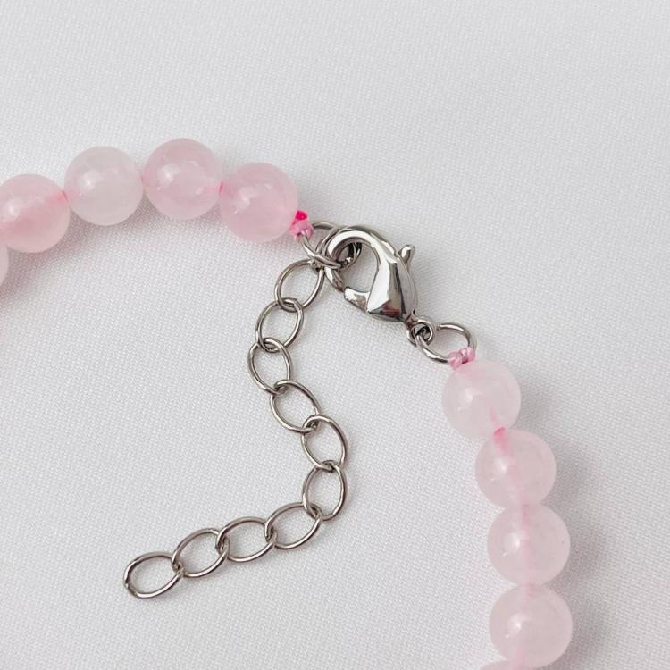 Браслет из Розового кварца, 16,5 см + – 18 см +, 6,5 мм, гладкий, Бразилия