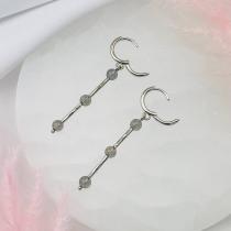 Серьги длинные из Лабрадора, 4,5 мм, гладкий, кольцевой замок, Мадагаскар