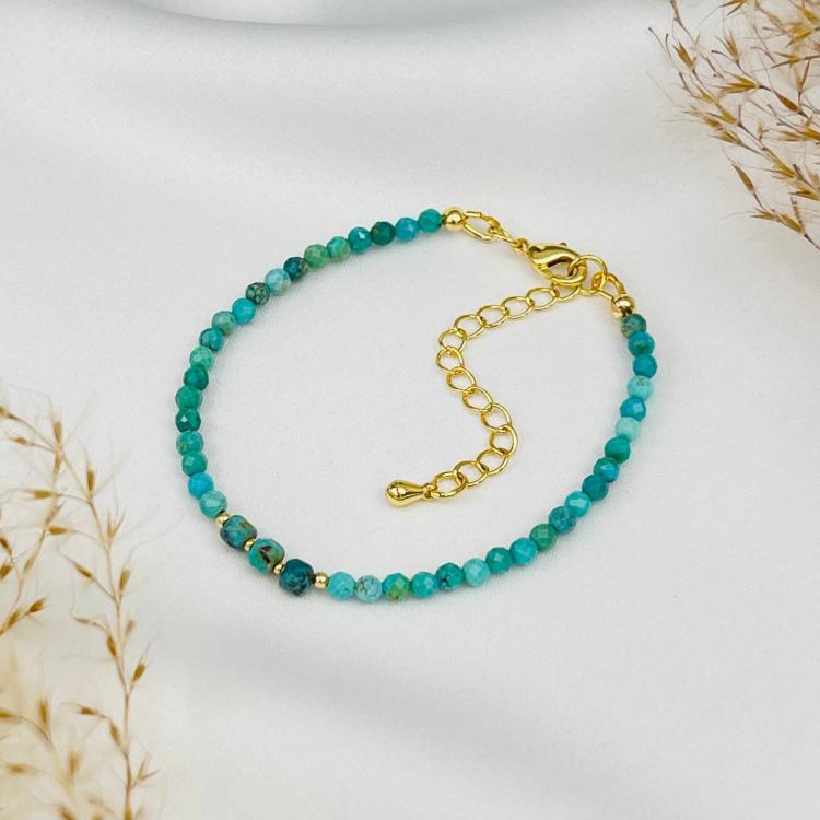 Браслет из Бирюзы, 16,5 см + – 18 см +, 3 мм, граненый