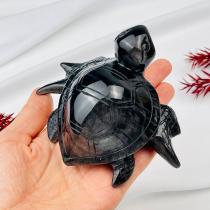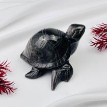 Фигурка резная "Черепаха" из серебристого Обсидиана, 9х11 см, Мексика