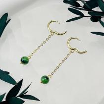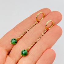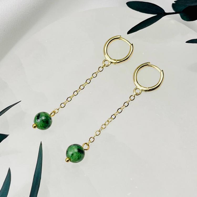 Серьги на цепочке с Цоизитом, 7 мм, гладкий, кольцевой замок, Африка