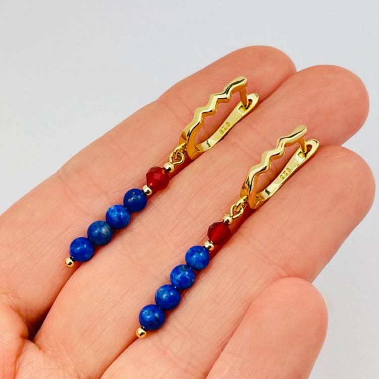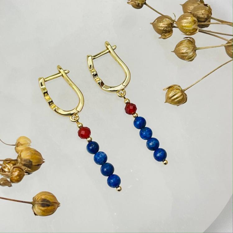 Серьги из Лазурита и Сердолика, 4 мм, гладкий/Граненый, английский замок, Афганистан