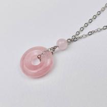 Кулон на цепочке из Розового кварца, 18 мм, бижутерный сплав, Бразилия