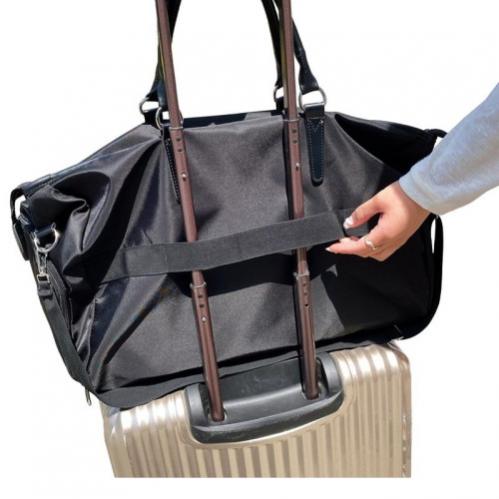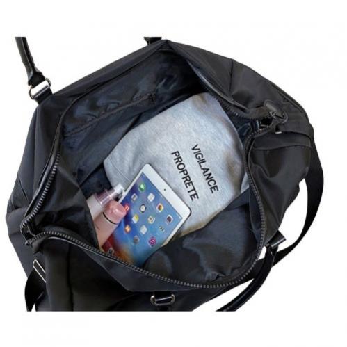 Большая спортивная сумка. Модель выполнена из высокопрочного текстиля. Внутри: одно большое отделение, внутри которого расположен карман на молнии для телефона, документов и различных мелочей. Сбоку у сумки имеется отсек для обуви. Сумка закрывается на молнию. В комплекте удлинённый чёрный ремень. На внешней задней стенке расположены лямка для крепления сумки на тележку или туристический чемодан на колёсах. На дне сумки расположены пластмассовые ножки для защиты и большей устойчивости. Высота сумки: 38 см Цвет фурнитуры: серебристый Цвет сумки: чёрный Подписывайтесь на нас в соц сетях и смотрите видеобзоры наших товаров первыми!