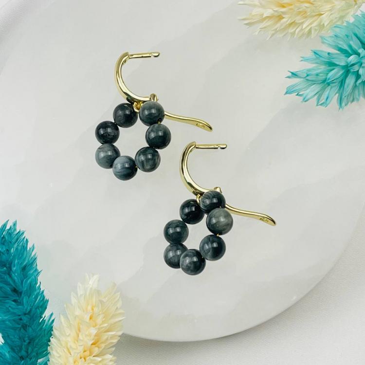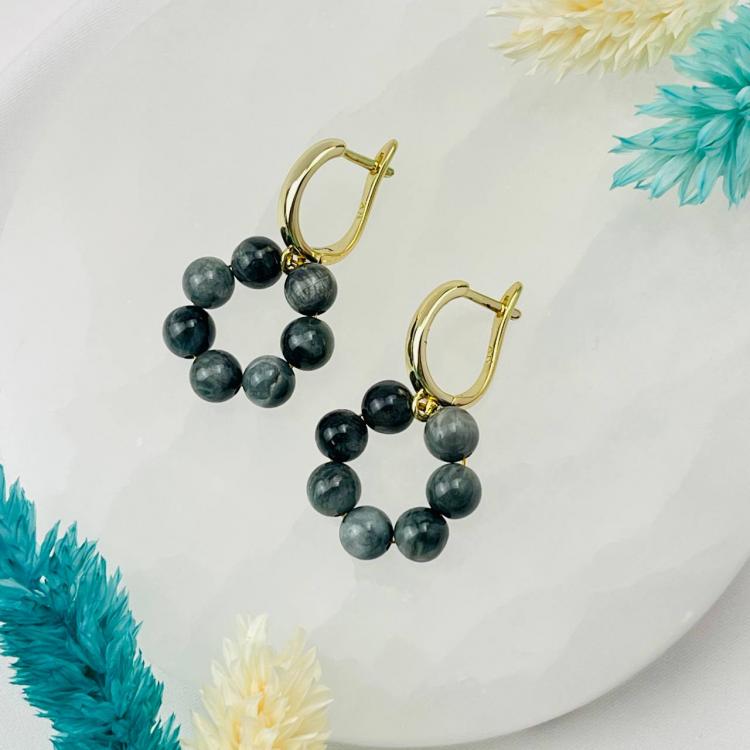 Серьги из Соколиного глаза, 6 мм, гладкий, английский замок, Африка