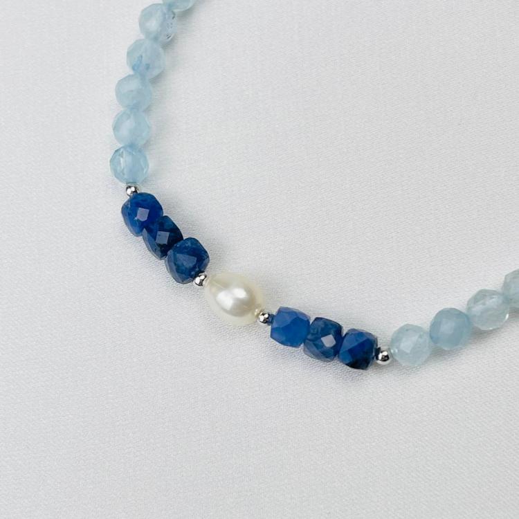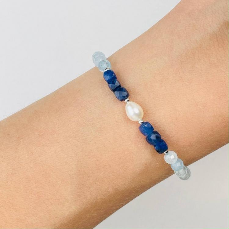 Браслет из Аквамарина,Содалита и Жемчуга, 16,5 см + – 18,5 см +, 4 мм, граненый, Бразилия