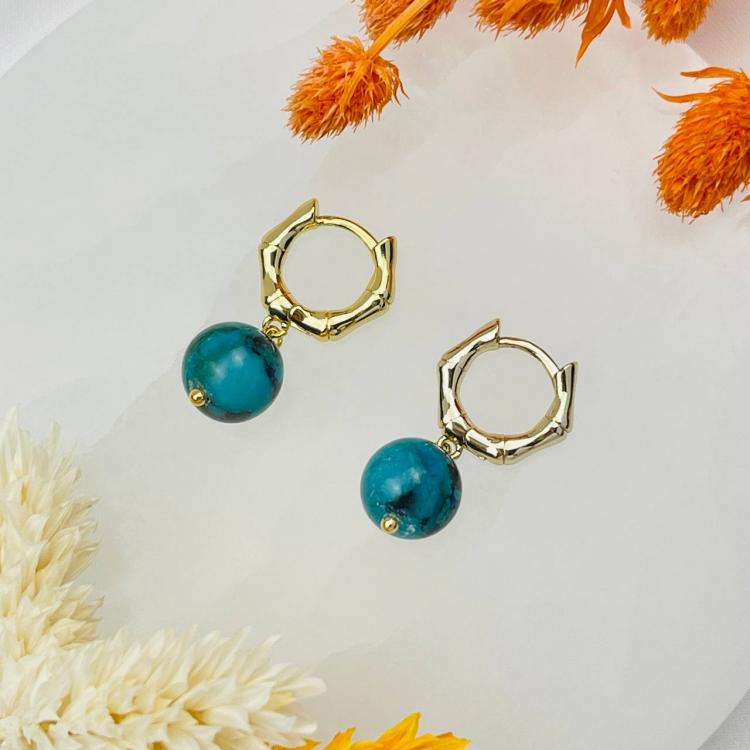 Серьги из Хризоколлы с Азуритом, 10 мм, гладкий, конго, США