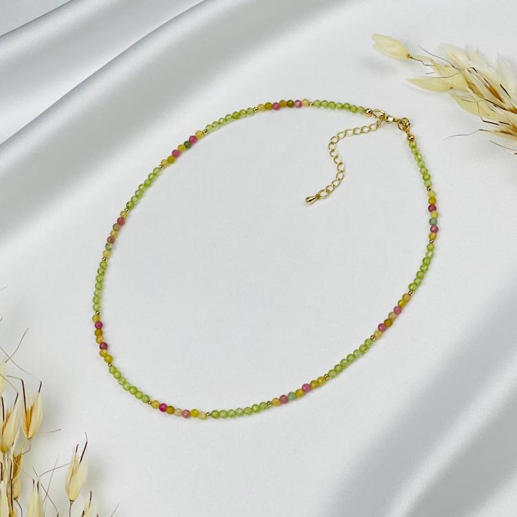 Чокер из Хризолита и Турмалина, 38 см +, 3 мм, граненый, США