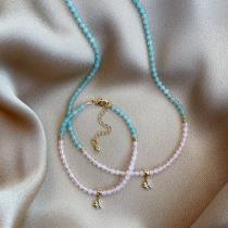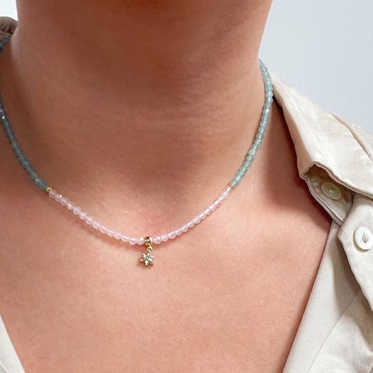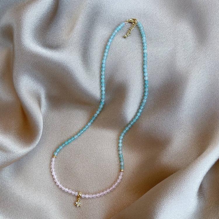Бусы с подвеской из Амазонита и Розового кварца огранка, 38 см + – 42 см +, 3,5 мм , граненый, Перу