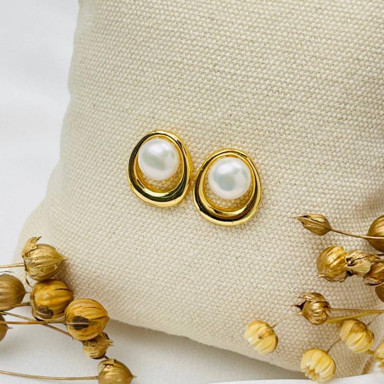 Серьги-пусеты из речного Жемчуга, 7 мм, необработанный, Китай