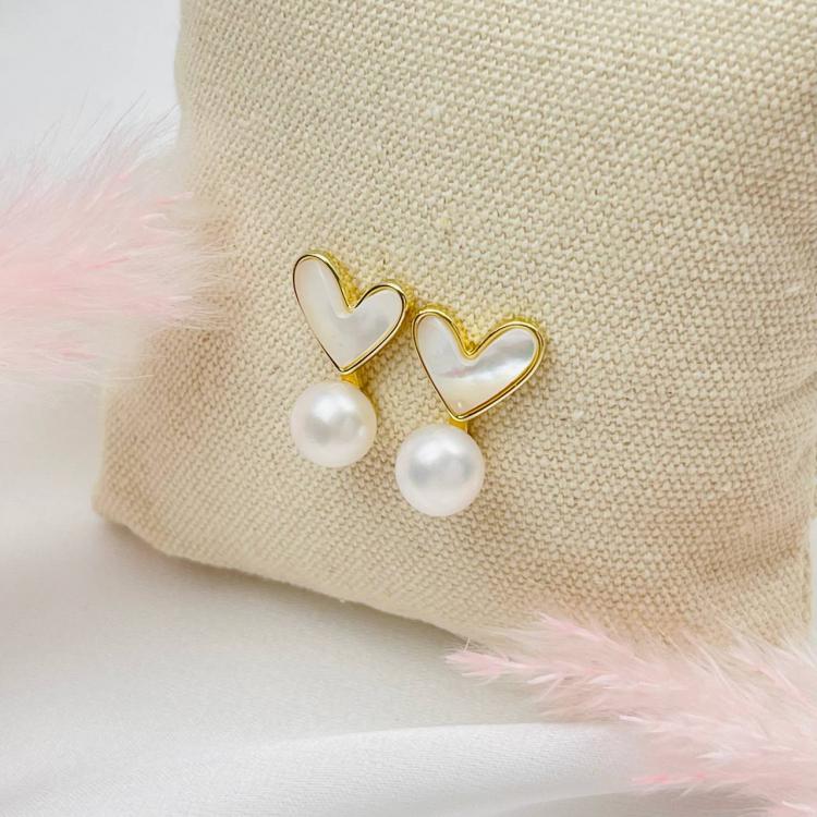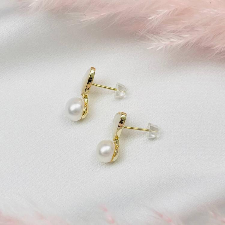 Серьги-пусеты из речного Жемчуга и Перламутра, 7 мм, необработанный, Китай