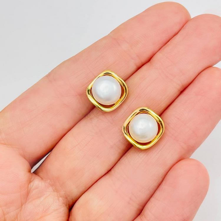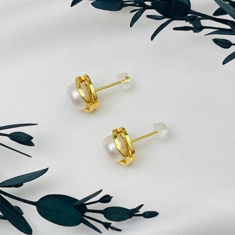 Серьги-пусеты из речного белого Жемчуга, 8 мм, необработанный, Китай