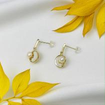 Серьги-пусеты из речного белого Жемчуга с Перламутром, 5 мм, Китай