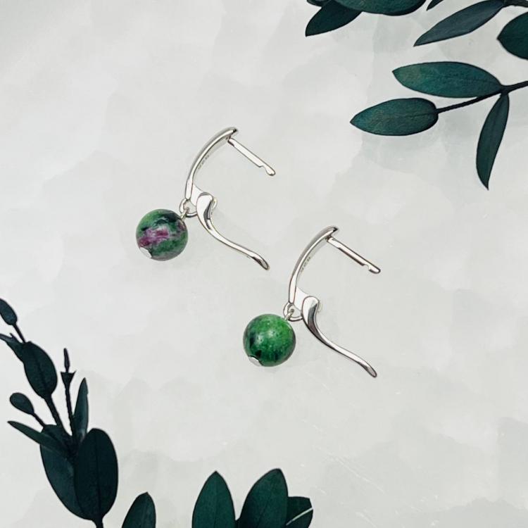 Серьги из Цоизита, 8 мм, гладкий, Африка