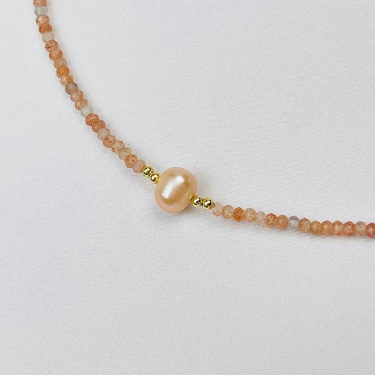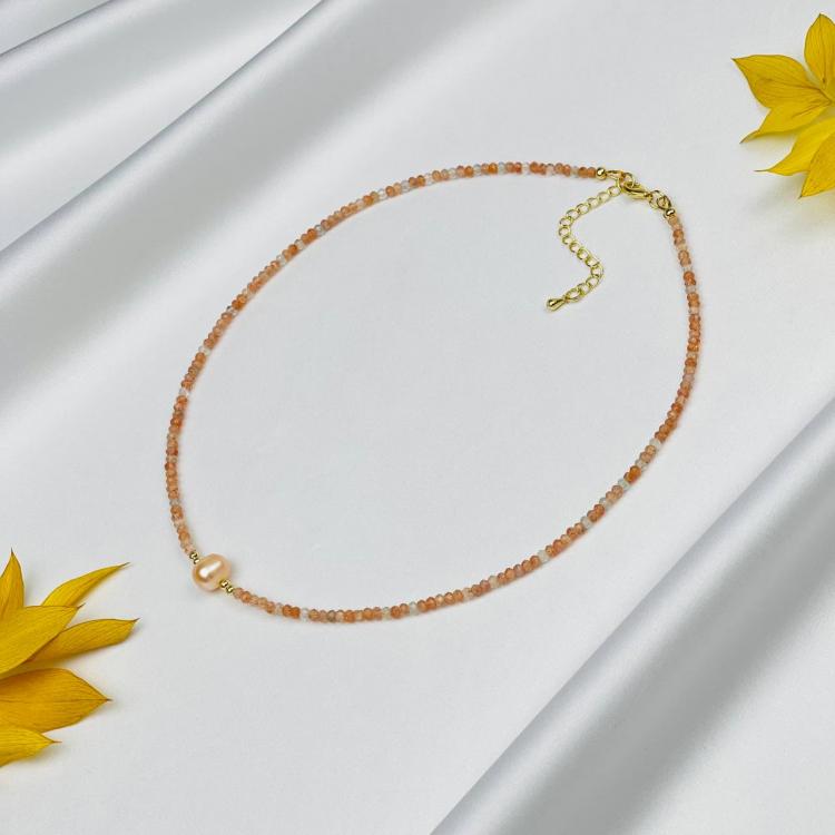 Чокер из Солнечного камня и Жемчуга, 38 см + – 40 см +, 9 мм, Индия