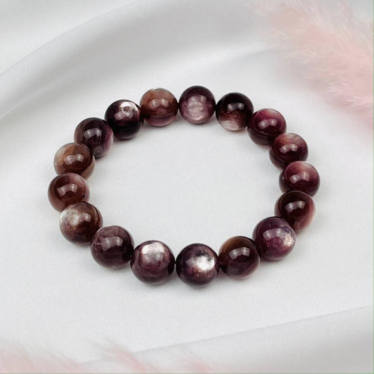 Браслет из камня Лепидолит, 19 см, 12-13 мм, гладкий, Мадагаскар