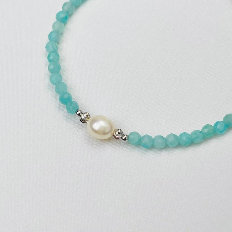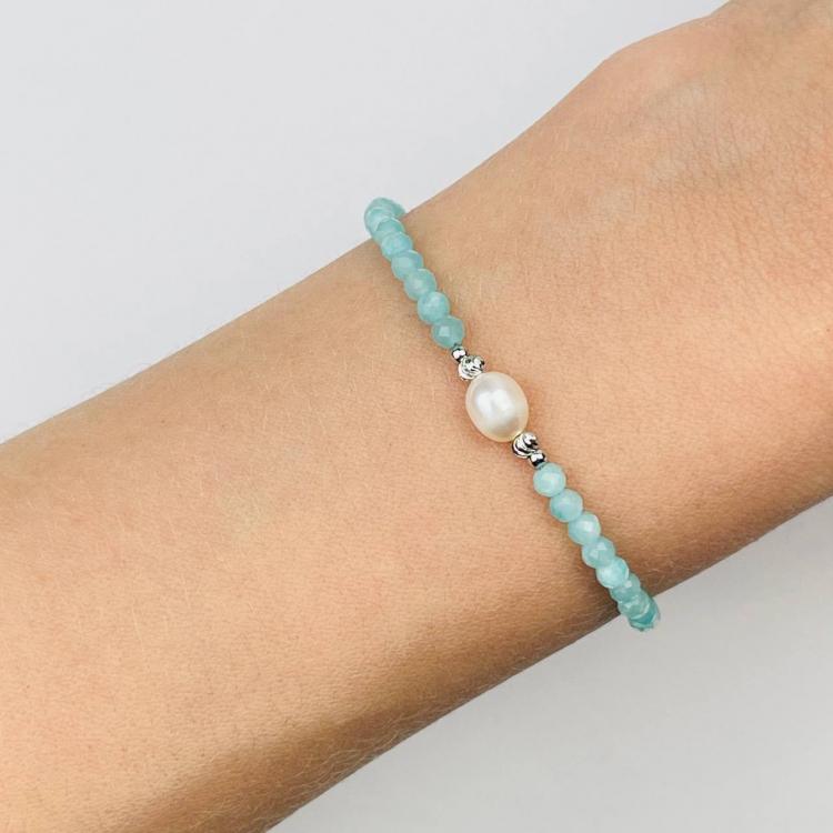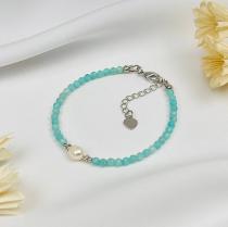 Браслет из Амазонита и Жемчуга, 16 см + – 18 см +, Перу