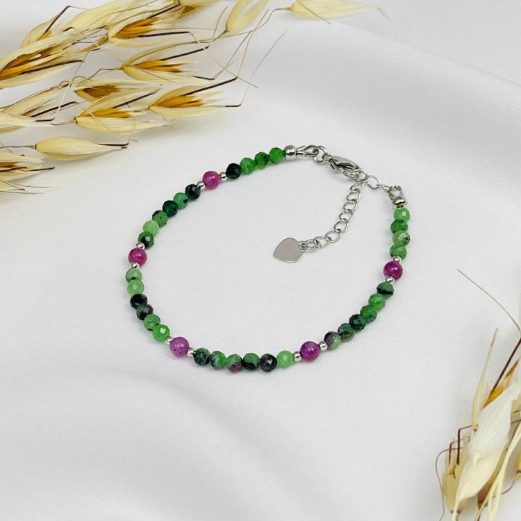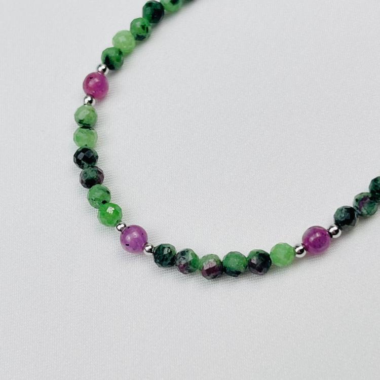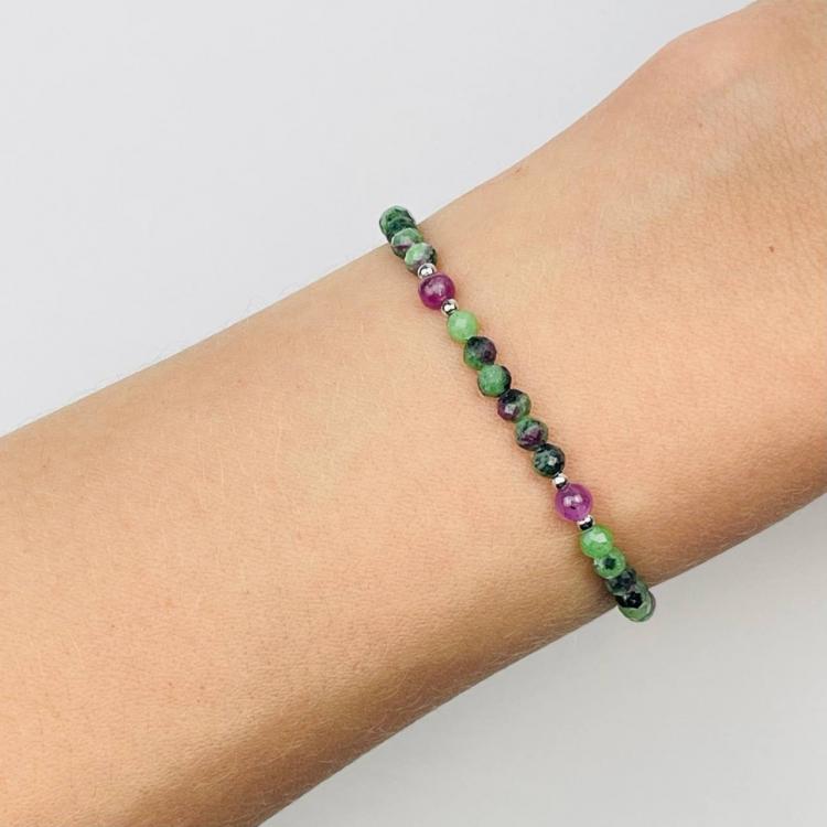 Браслет из Цоизита с Рубином, 16,5 см + – 18 см +, 3,5-4 мм, гладкий/Граненый, Африка