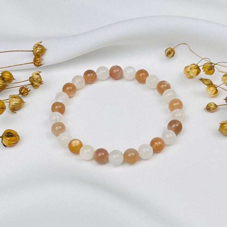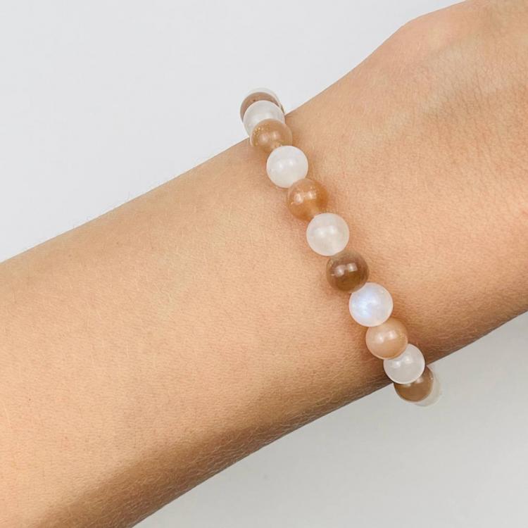 Браслет из Лунного камня микс, 16 см – 18 см, 6,5 мм, гладкий, Индия